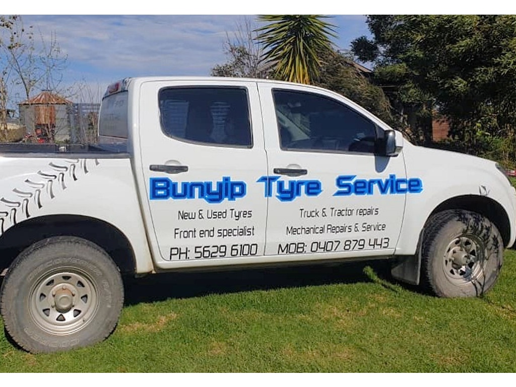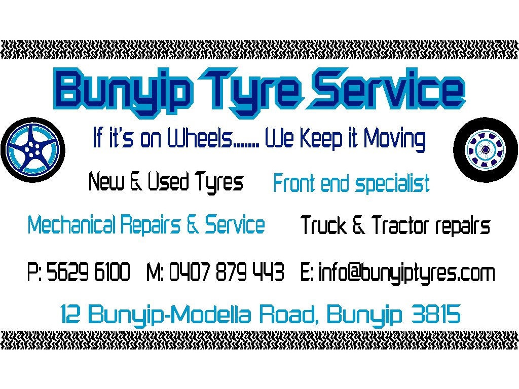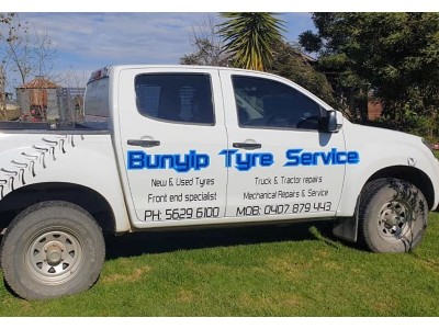 Front End & Suspension Specialists Bunyip Tyre Service is located at 12 Modella Road Bunyip and owned and operated by Graham Briggs or "Briggsy" as his friends would rather have him known. With over 30 years experience in the mechanic and tyre service industry, Briggsy and the Bunyip Tyre Service team offers an extensive range of products from all major manufactures. From tyres and rims through to batteries and exhaust systems. Quality mechanical work, exhaust fitting and repair, wheel alignment, suspension and front end work are a specialty. Graham and the team take great pride in their work with an emphasis on customer service. Tyres for all Makes & Models Mag Wheels and Rims On Site Servicing & Tyre Repairs For more information about our on site services drop us a line at the workshop on 5629 6100.